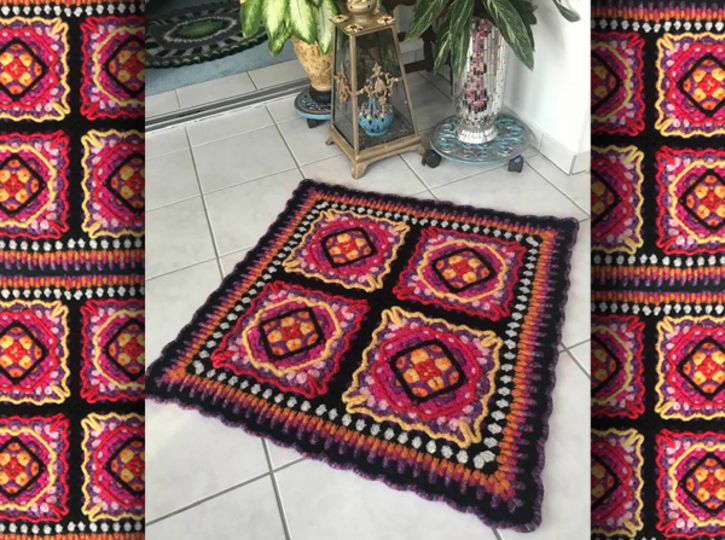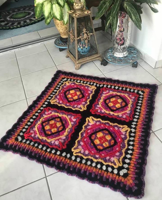 Der wunderschöne Filzteppich Sharazade ist eine herrliche Häkelhandarbeit die viel Freude macht....und mit der dicken FilzWolle ist man auch bald fertig.....