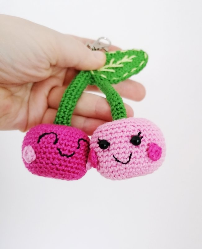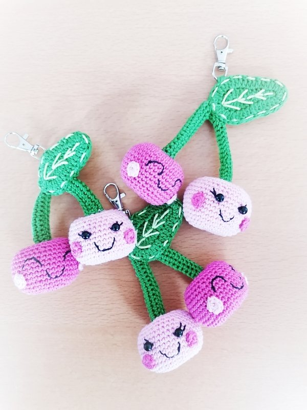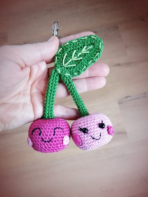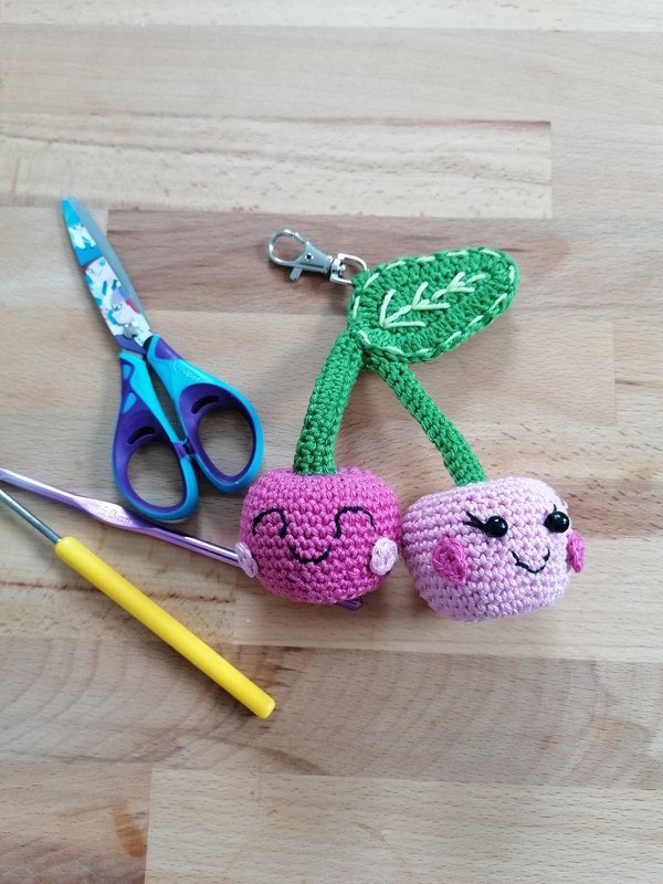 Häkle dir deine super süßen "Happy Cherries" als Glücksbringer, Taschenbaumler oder Schlüsselanhänger.