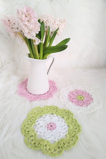 Häkelanleitung für ein wunderschönes Häkeldeckchen, gehäkelt aus festen Maschen und Stäbchen.