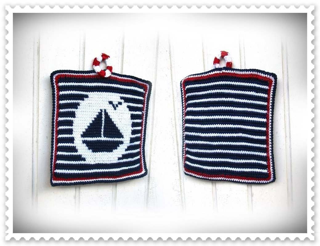 Diese Maritimen Topflappen, von den Seeleuten liebevoll Pottlappen genannt, sorgen für einen Blickfang in Eurer Küche und zaubern "Kombüsen-Flair".