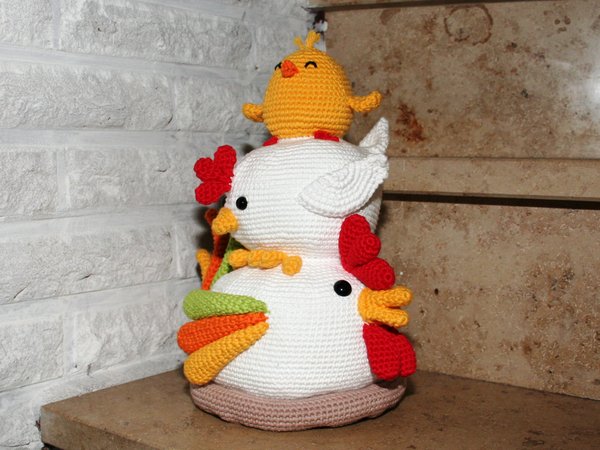 Sobald du mit dem Häkeln fertig bist, ist auch der Hühnerhaufen fertig. :)