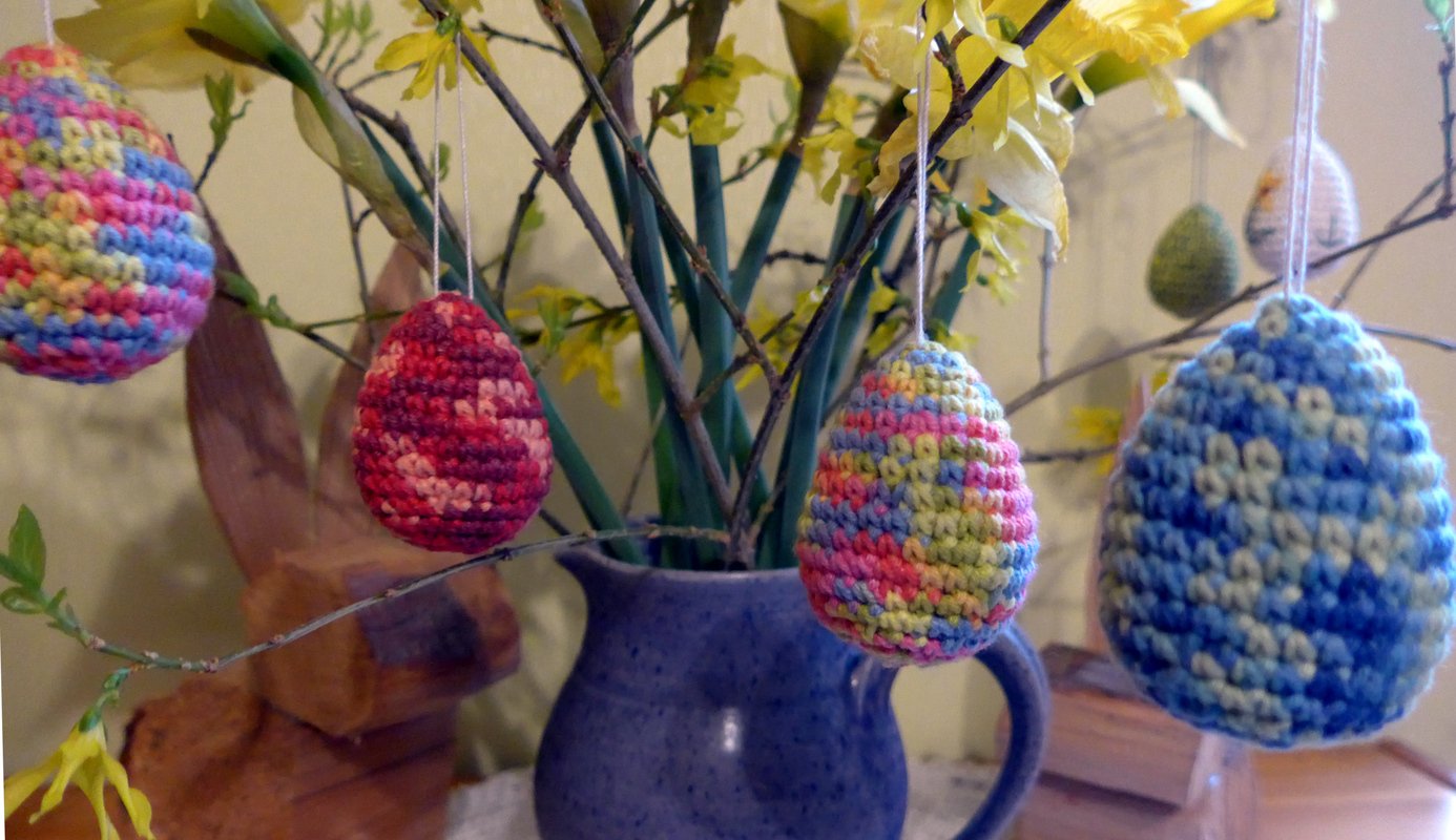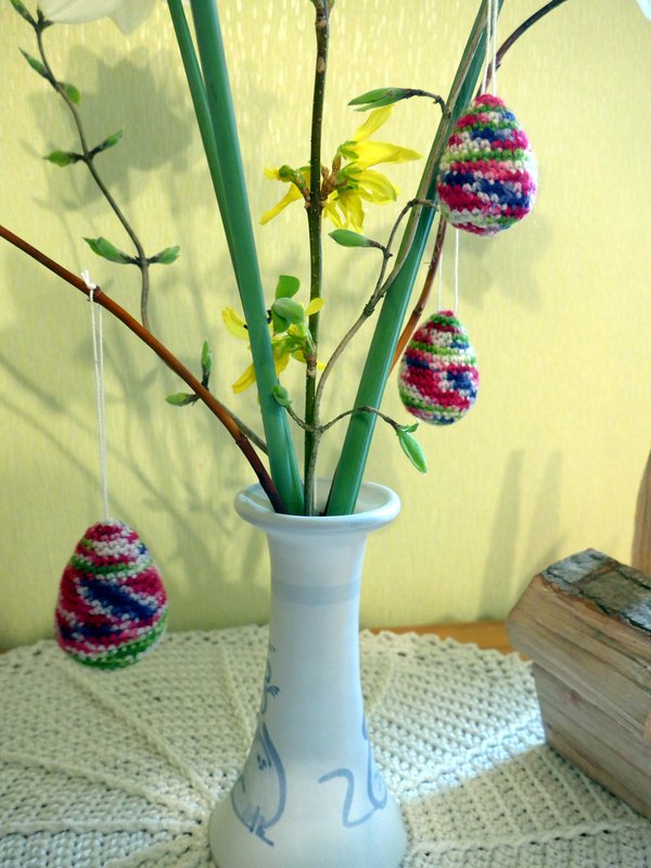 Nach dieser Anleitung könnt Ihr bunte Eier für Euren Osterstrauß häkeln. Selbstverständlich könnt Ihr die Eier auch als Taschenbaumler oder Schlüsselanhänger verwenden.
