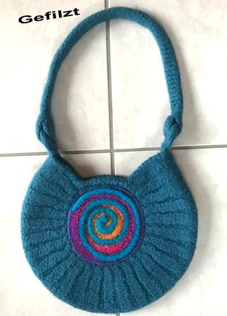 Die nette Filztasche Spirale ist eine herrliche Häkelhandarbeit die viel Freude macht....und mit der dicken Wolle ist die Tasche auch bald fertig.....