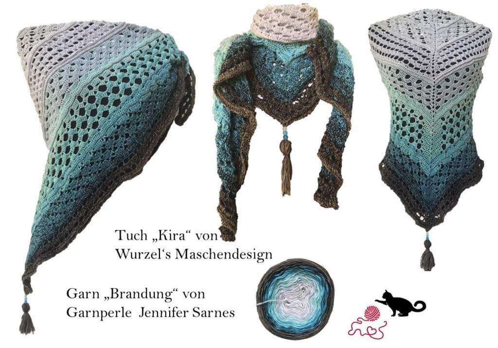 Die Anleitung zum Tuch besteht aus schriftlich ausformulierten Reihen und beinhaltet Häkelschriften.