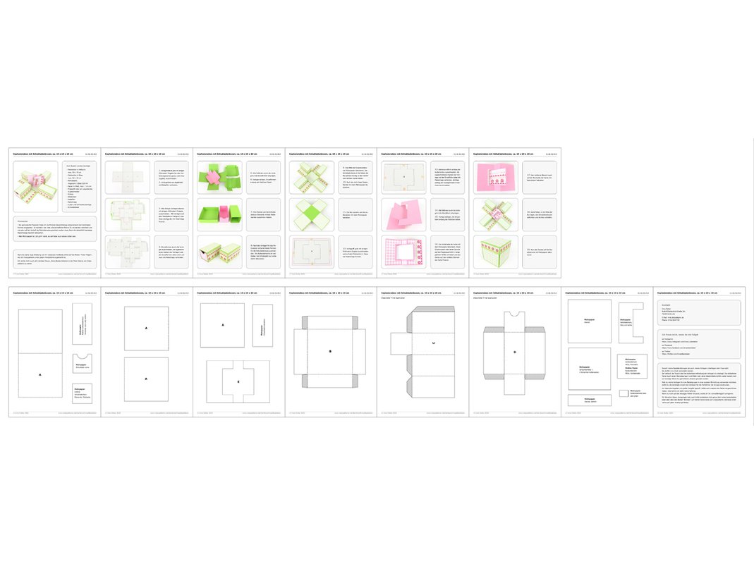 Zum Basteln dieser Box sollst du mit Schere, Cutter und Schneidelineal umgehen können, wissen, wie man Faltlinien einprägt und die Grundformen faltet. Auch sollst du bereits mit Klebstoff gearbeitet haben. Unter diesen Voraussetzungen wirst du diese Box ohne Probleme nacharbeiten können.