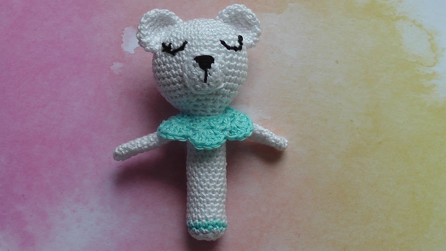 Häkelanleitung für eine niedliche Eisbärchen baby -Rassel "Lotte"