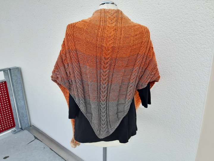 Das Tuch ist von der Konstruktion her sehr einfach, die Zunahmen bleiben immer an den gleichen Stellen. Die Anleitung ist ausführlich beschrieben und durch das unterlegen mit Farben bzw. dickerer Schrift erkennt man automatisch in jeder Reihe die notwendigen Veränderungen.