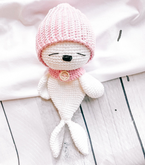 Mit dieser Anleitung häkelst du eine kleine Schmuse - Robbe.