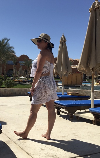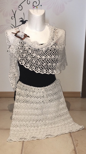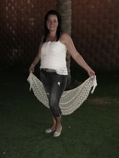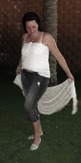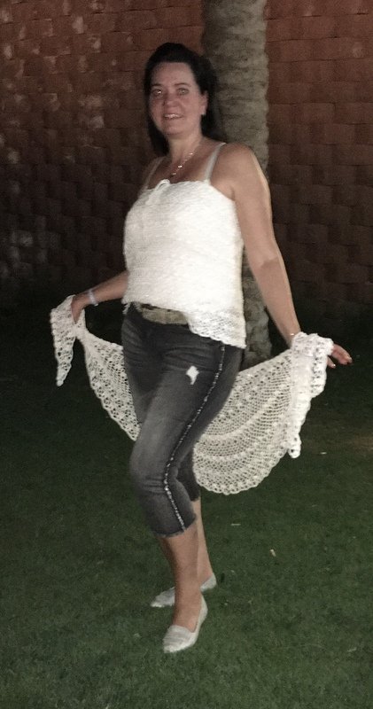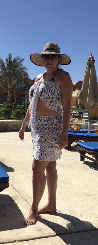 Diese Set hat mich in meinem Urlaub in Ägypten begleitet. Ein schickes Set für den Abend und ein passendes Bolerotuch für die Schultern. Dank der weiten Spannweite läßt es sich am Rücken binden.