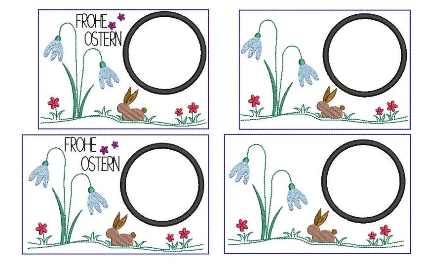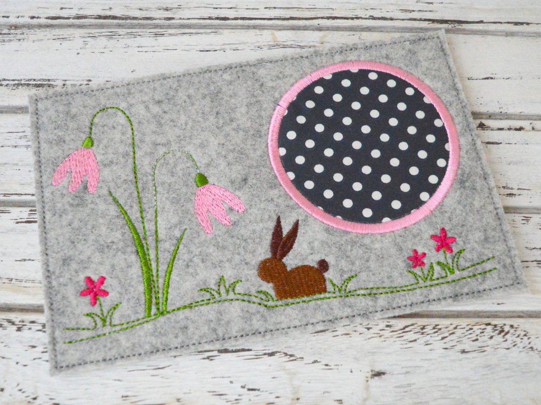 Stickdatei Mug Rug mit Hasenwiese zu Ostern,