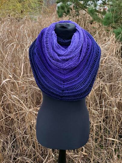 Faruk ist ein außergewöhnliches, simples Tuch. Es besteht aus hübschen 3D Reihenelementen und enthält 2 Häkelschriften für verschiedene Versionen.