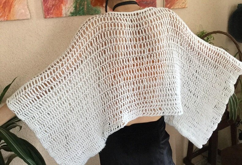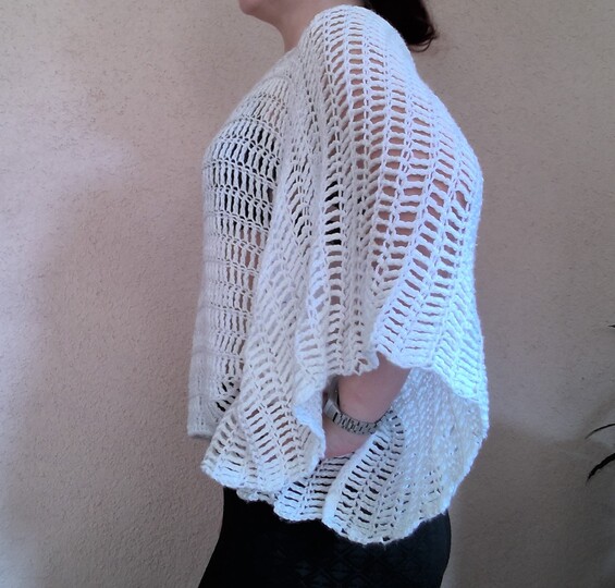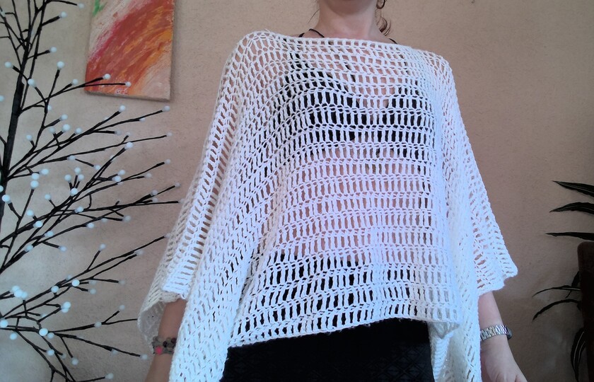Der luftige Poncho wird in einem Stück gehäkelt. Im Sommer trage ich ihn gern über den Bikini. Aber auch über Tops und Kleider sieht er gut aus. Er passt also perfekt zum kommenden Frühling und zum Lagenlook.