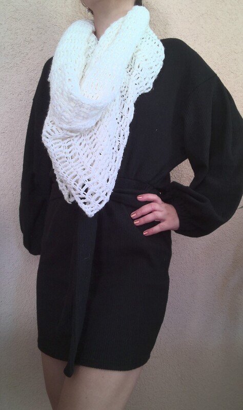 Der Poncho passt von Gr. 36 bis 40. Er kann aber ganz einfach an jede Größe angepasst werden.