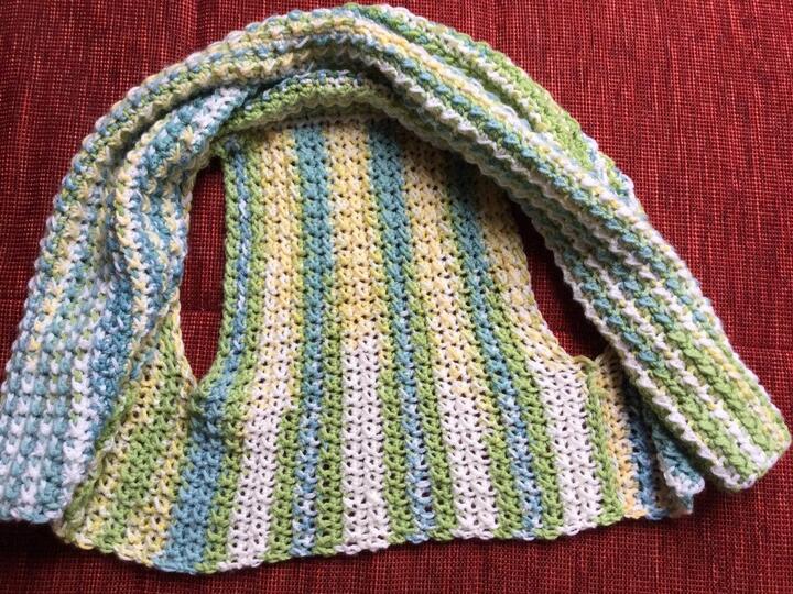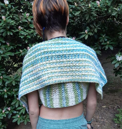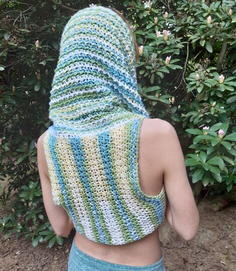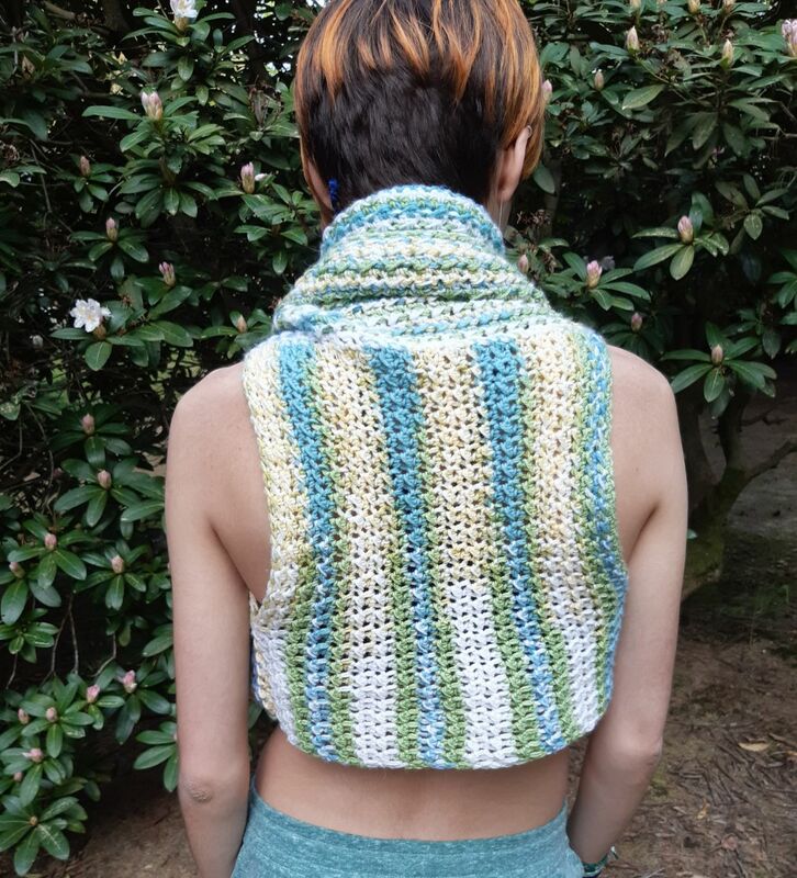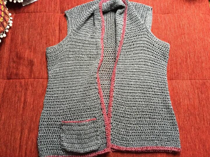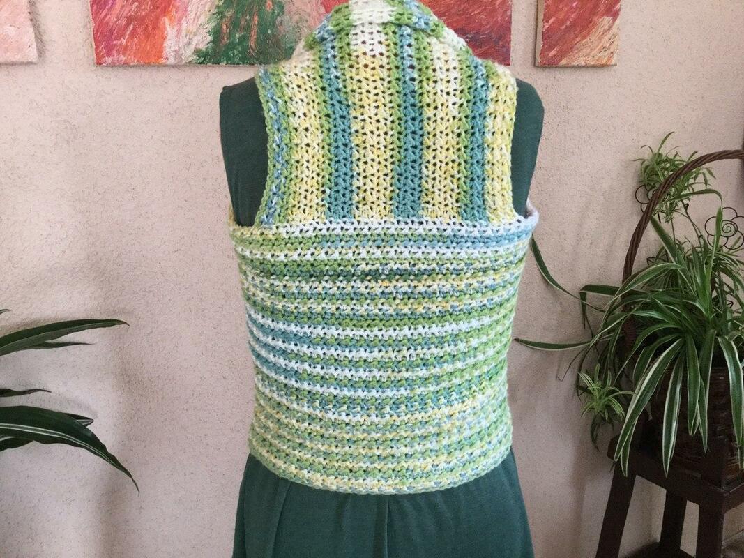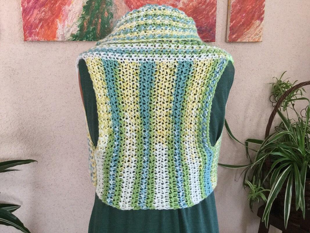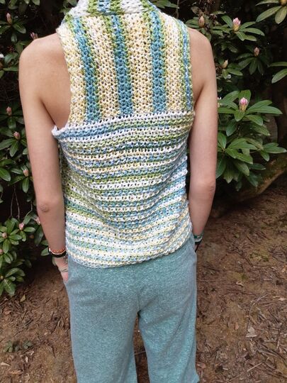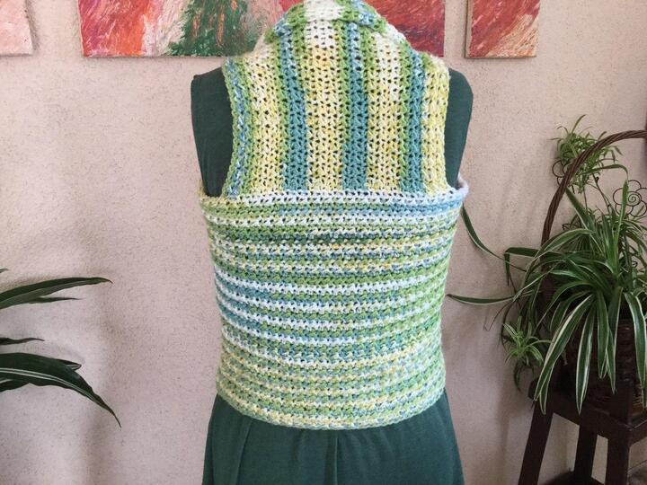 Sie ist schön als Sommerweste, mit einem dickeren Garn ist sie aber auch für die kühlere Jahreszeit geeignet.