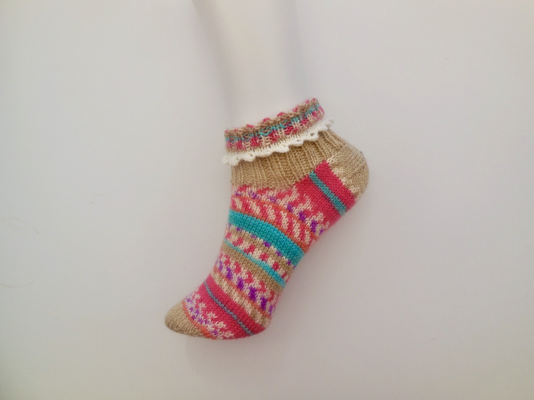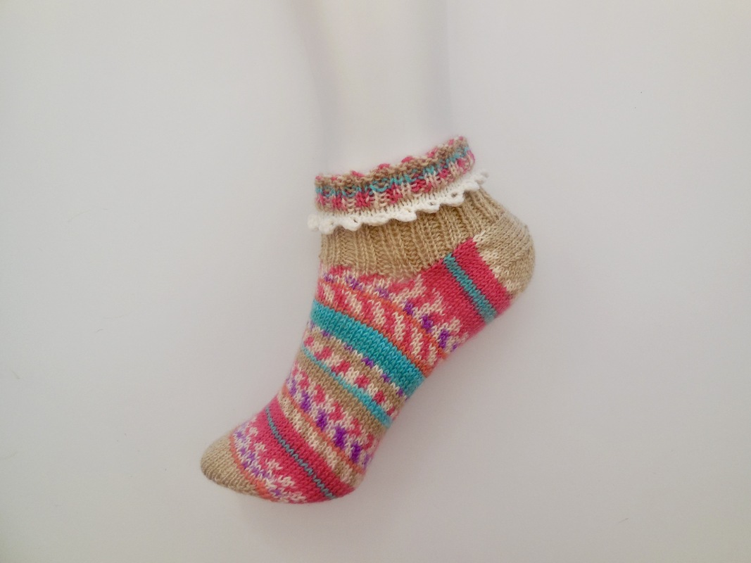 Sehr schöne, leichte Sneakerssocken mit Spitzenabschluß.