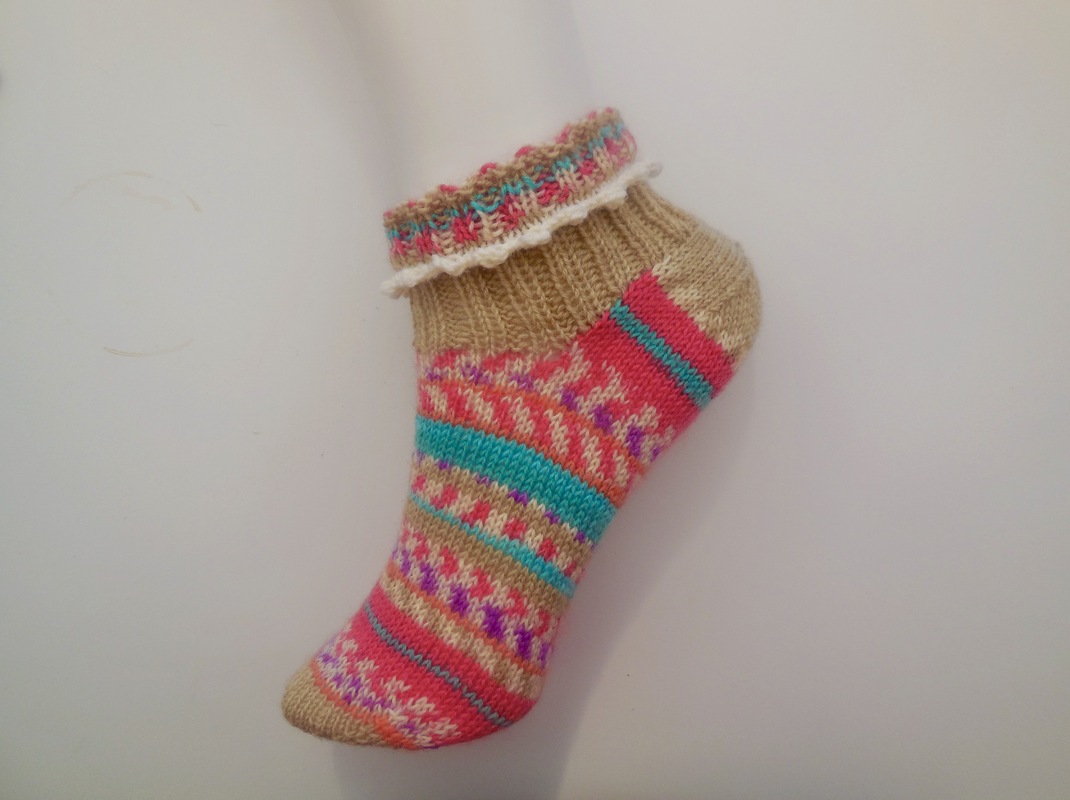 Einfach zu stricken, da das Stricken der herkömmlichen Ferse wegfällt.
