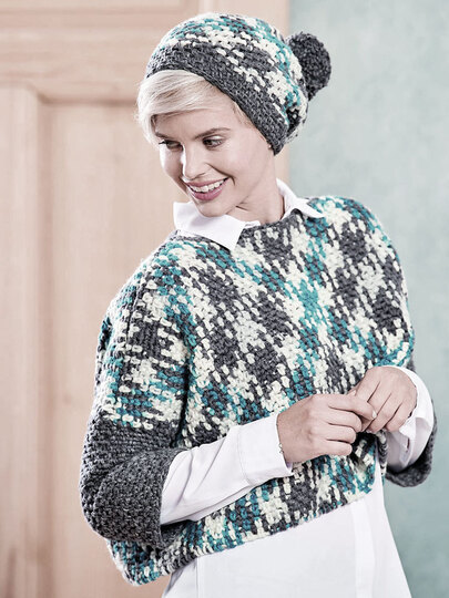 Ein schickes Set. Ein Oversize-Minipulli zum drüber ziehen mit passender Mütze.