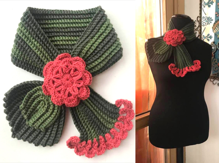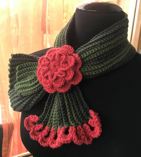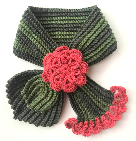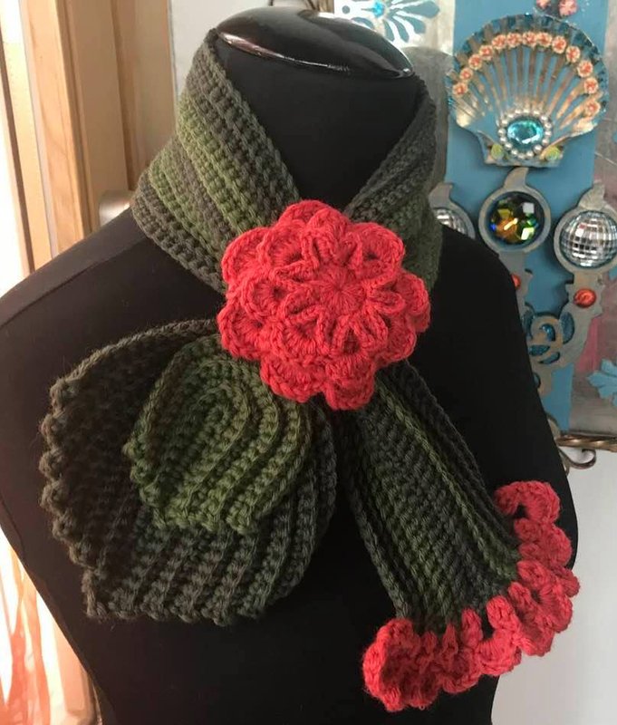 Hier kommt ein lustiger, kleiner Blumenschal,... der einfach nur gute Laune macht und schick UND schön warm an Deinem Hals ist !