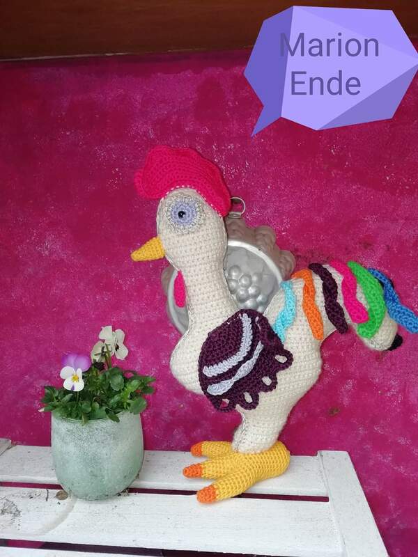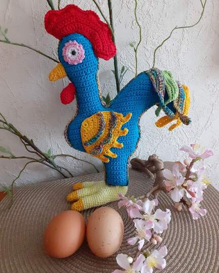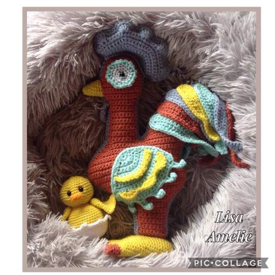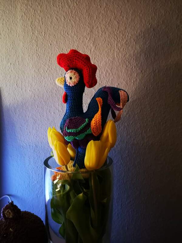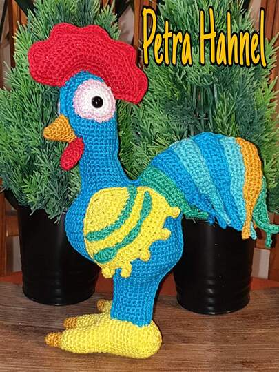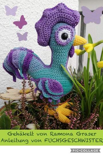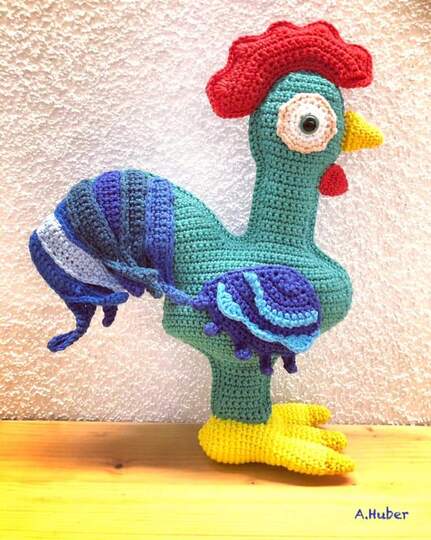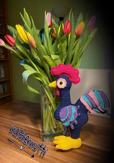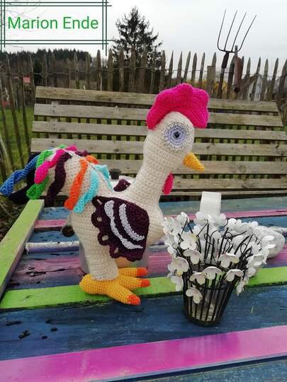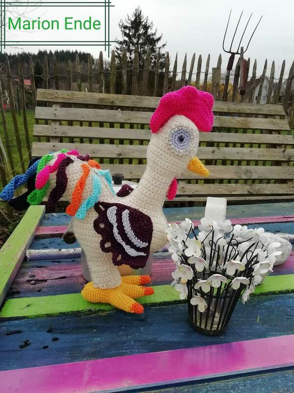 Das Huhn wird mit angegebenem Garn ca. 30 cm hoch.