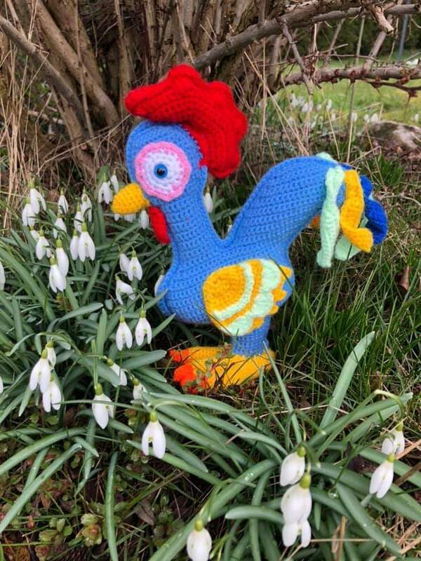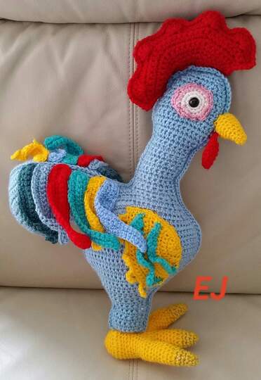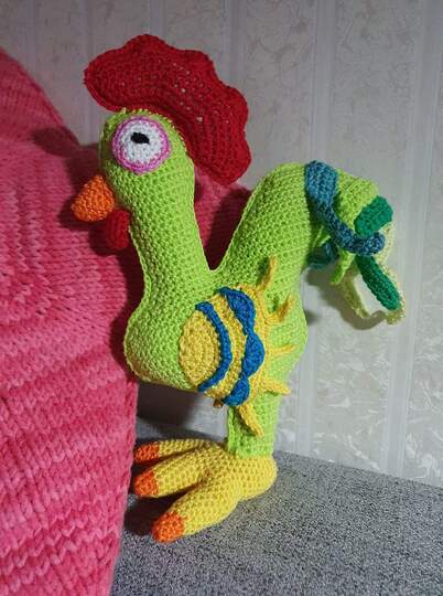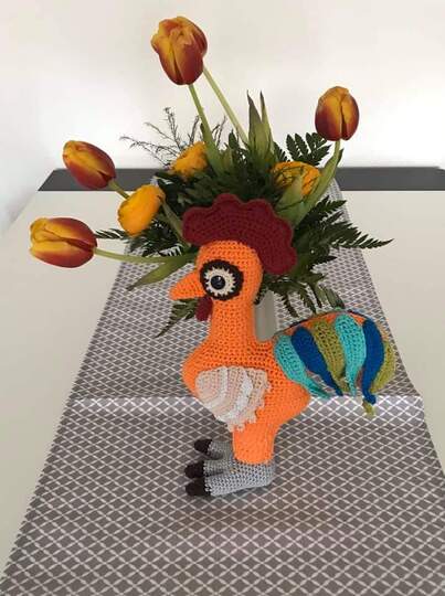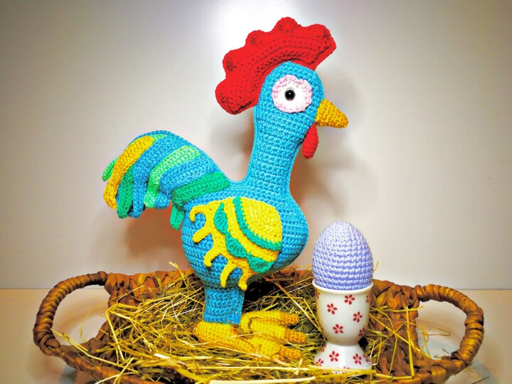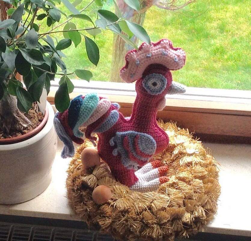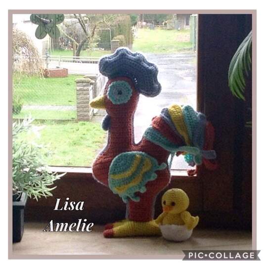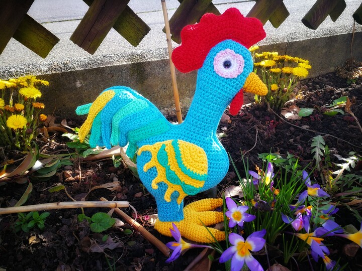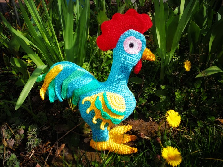 Das Huhn wird mit angegebenem Garn ca. 30 cm hoch.