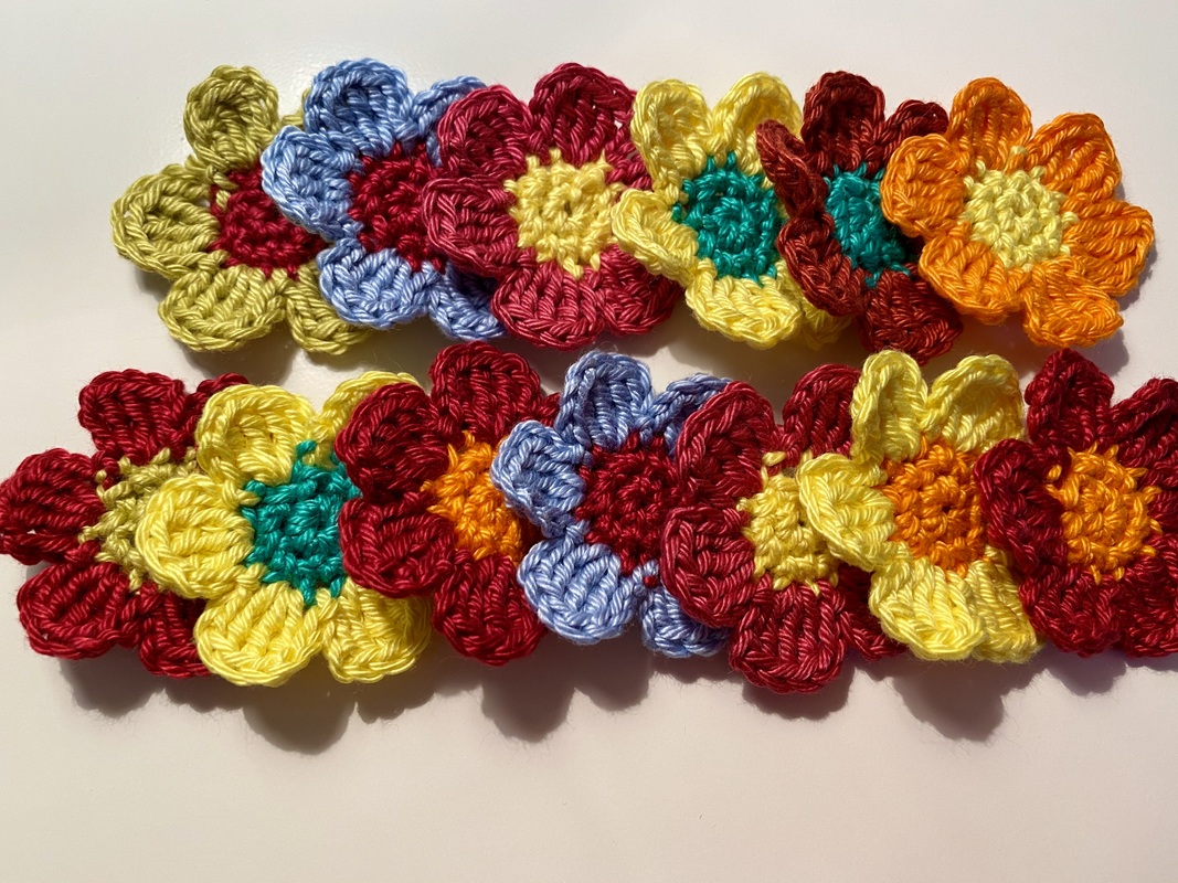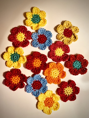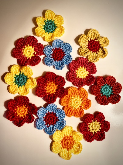 Magischer Ring/Fadenring, Luftmaschen, Feste Maschen, Doppelstäbchen, Kettmaschen.