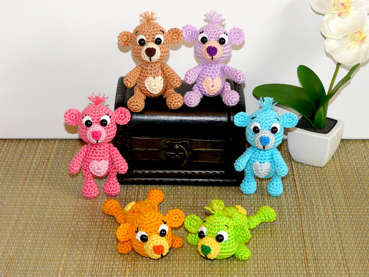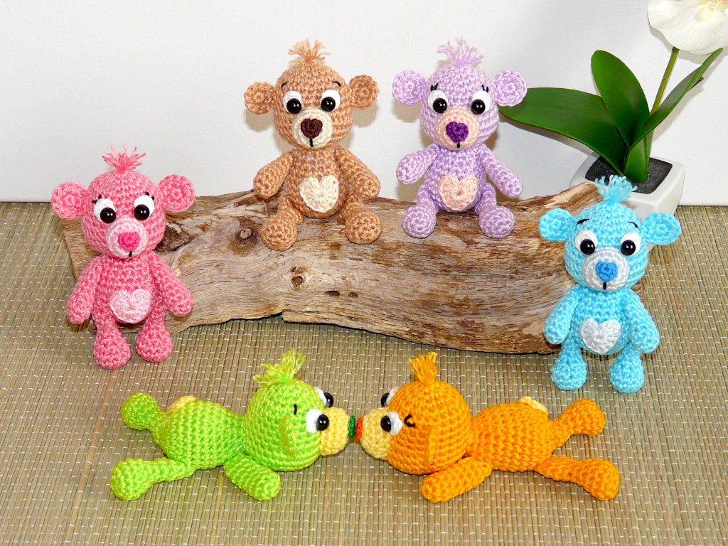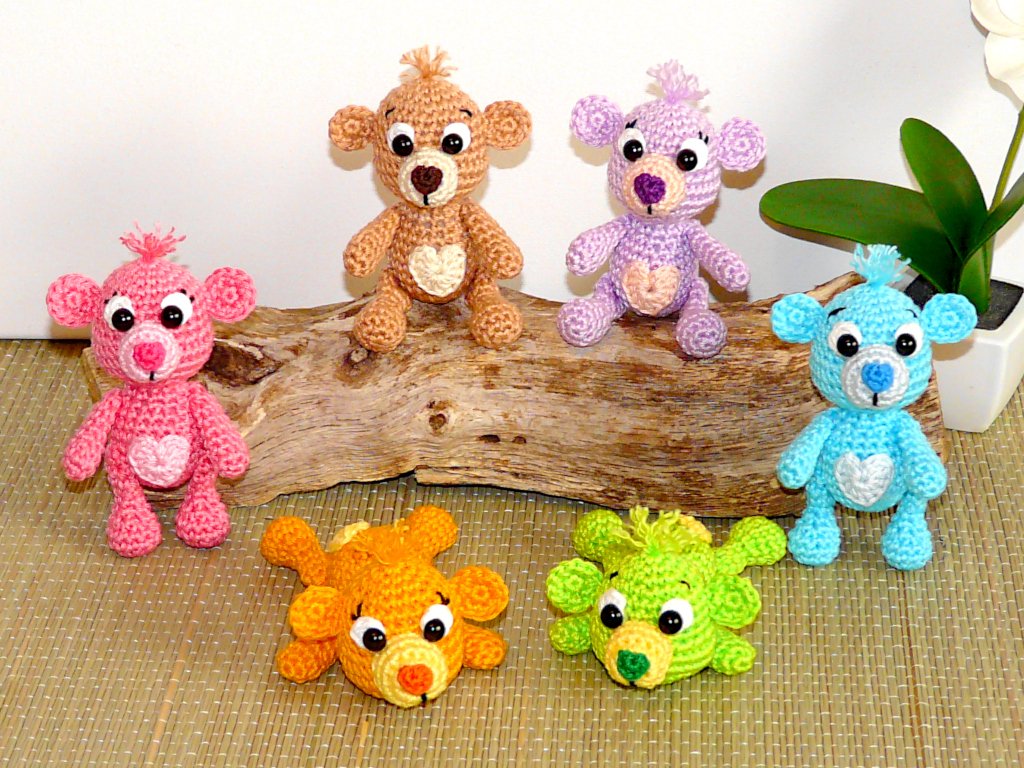 Diese quietschbunten kleinen Teddys sind echte Gute-Laune-Macher und zaubern jedem ein Lächeln ins Gesicht. Ob stehend, sitzend oder liegend die kleinen erwärmen jedem das Herz. Sie sind perfekt als Schlüsselanhänger oder Taschenbaumler geeignet. Aber ihr könnt natürlich auch euren Frühlingsstrauß oder Frühlings Türkranz mit diesen süßen Teddys schmücken. Häkelt euch die süßen in fröhlich bunten Farben und macht euch oder euren Liebsten eine große Freude.