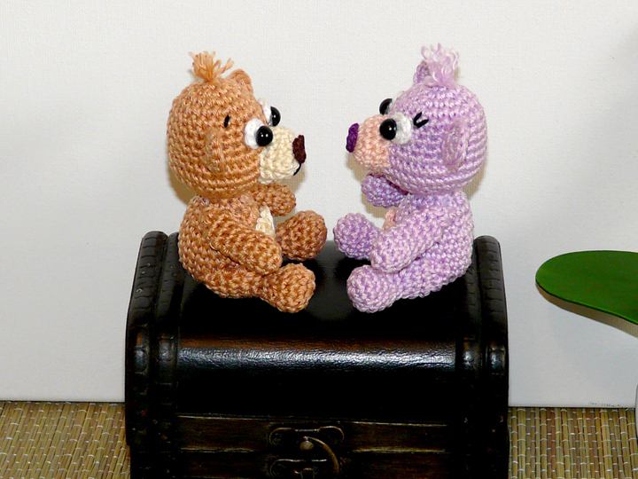 Ich beschreibe euch in der Anleitung wie der sitzende, der stehende und der liegende Teddy gehäkelt wird.