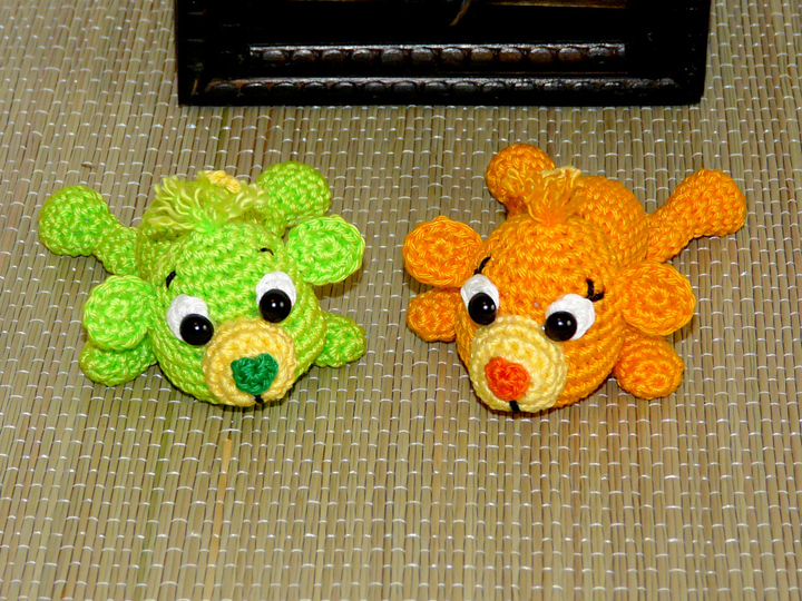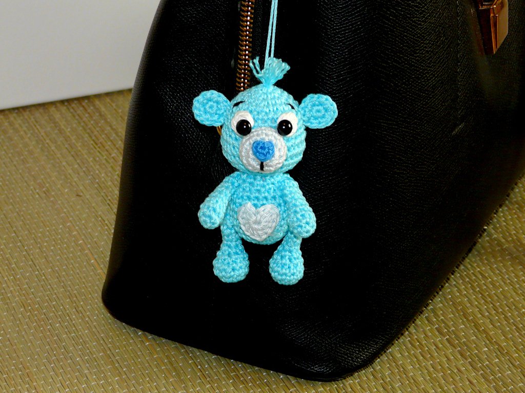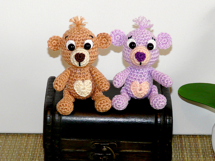 Je nach Garn- und Häkelnadelstärke variiert die Größe von den Teddys.