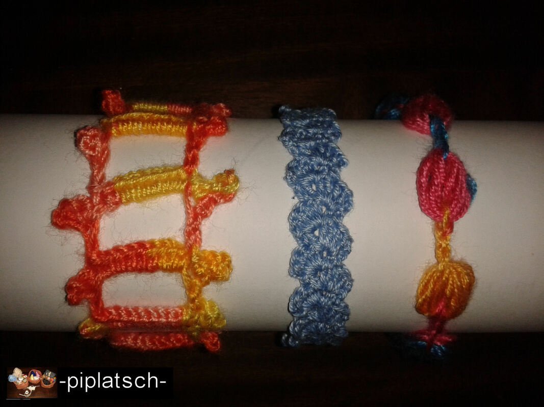 Die Armbänder sind sehr leicht nachzuarbeiten, wenn man die Grundbegriffe des Häkelns kennt.