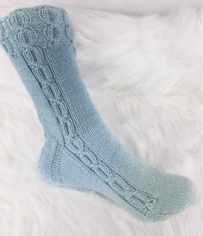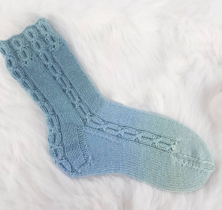 Hiermit erhältst Du eine komplette Strickanleitung über 6 Seiten der Broken Chains Socken.