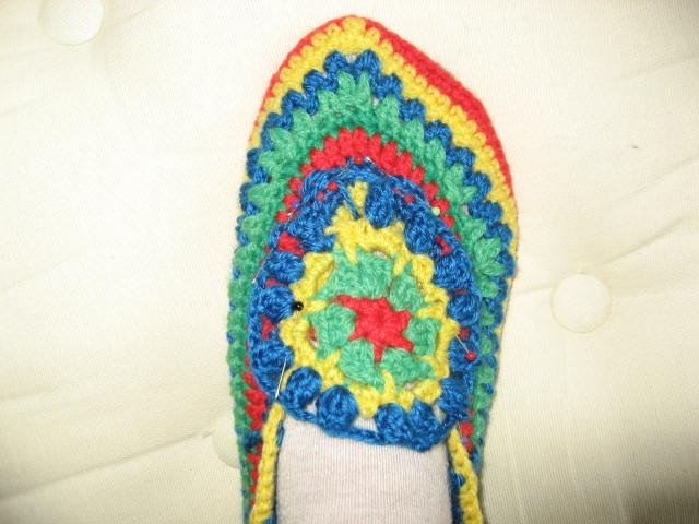 Die Sohle wird an der Ferse für eine perfekte Passform schmaler gehäkelt.
