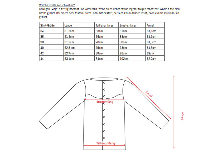 „Maja“ ist ein stylischer Cardigan im Retro-Look. Er kann aus farbenfrohen Jerseystoffen, aber auch Strick- oder Sommersweat genäht werden. Aus feinen weißen Stoffen oder Spitze genäht eignet er sich wunderbar aus Brautjacke. Im Schnittmuster sind die Größen 34 bis 44 enthalten.
