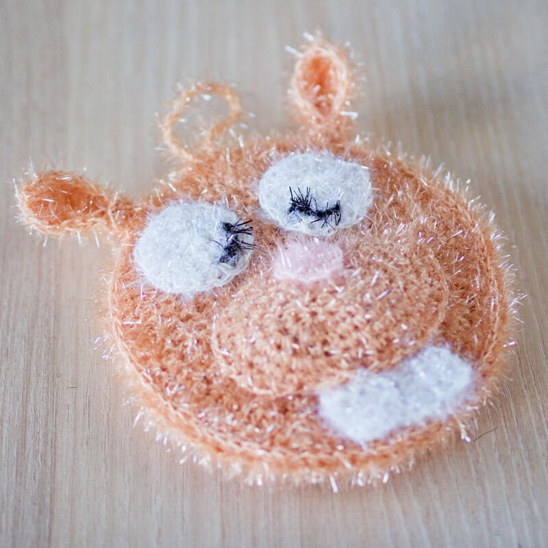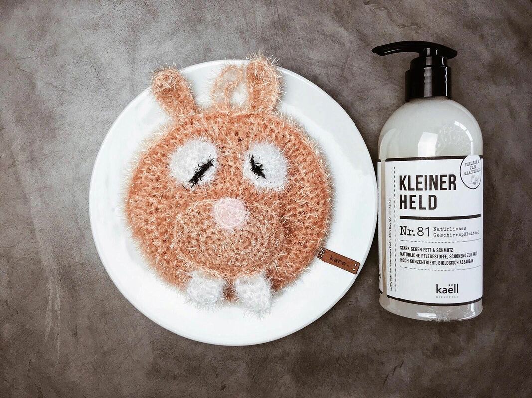 Der kleine Biber wird aus speziellem Spülschwammgarn gehäkelt und kann wunderbar für den Abwasch oder als Peelingschwamm verwendet werden. Die flache Struktur macht ihn besonders handlich.