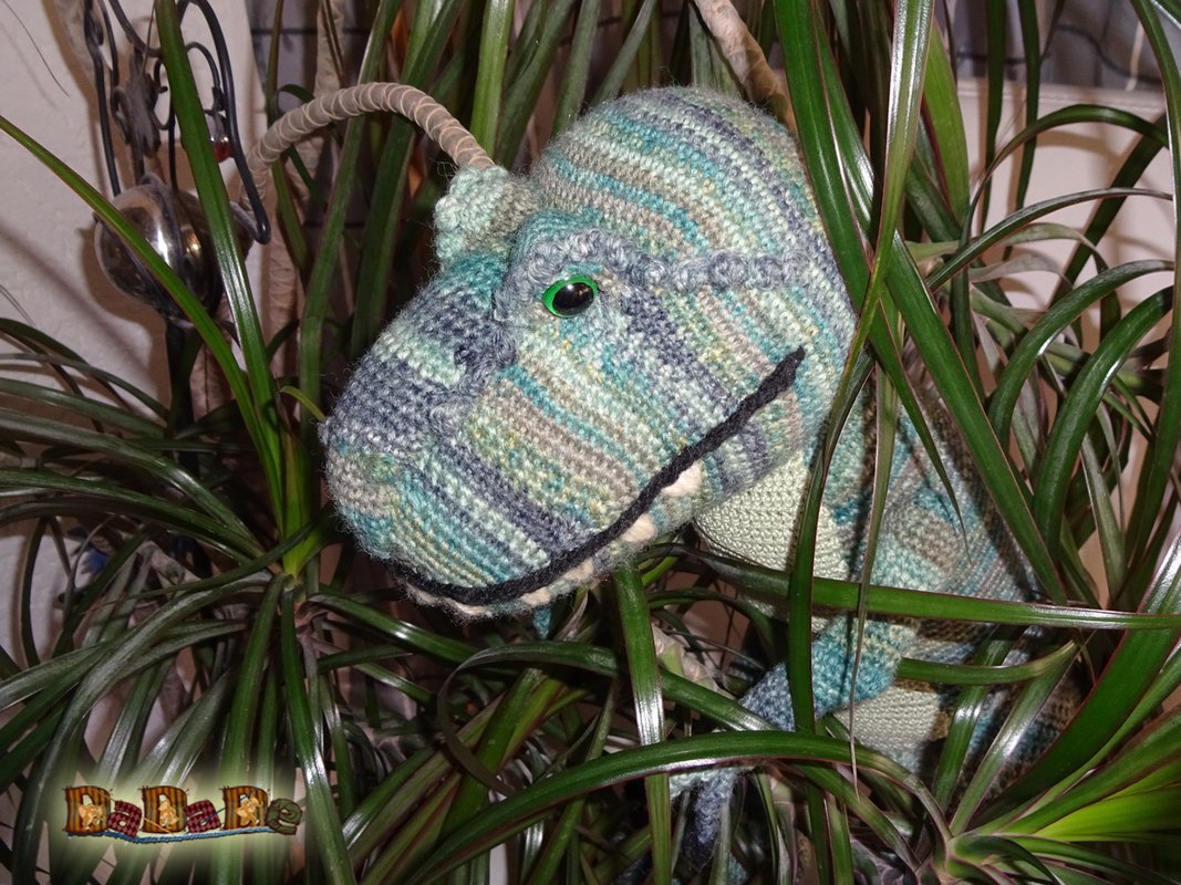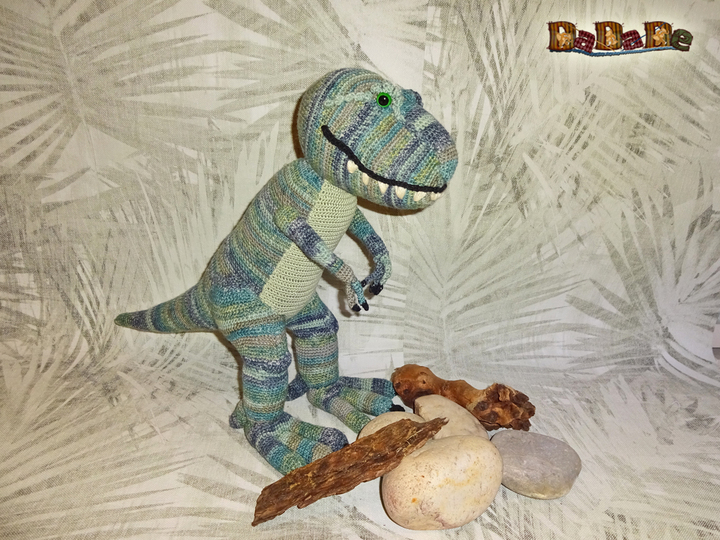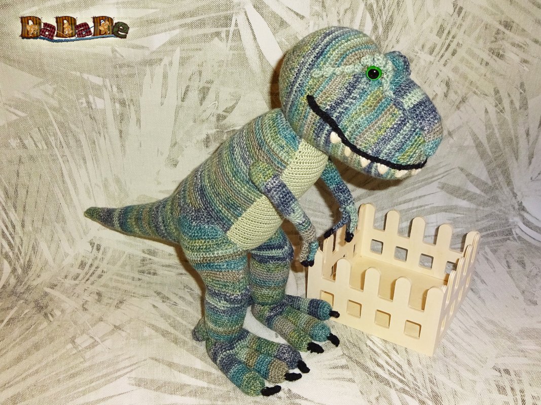 Mit Nadelstärke 2,5 gehäkelt, wird Terry-Rex ungefähr; 40cm hoch x 35cm lang