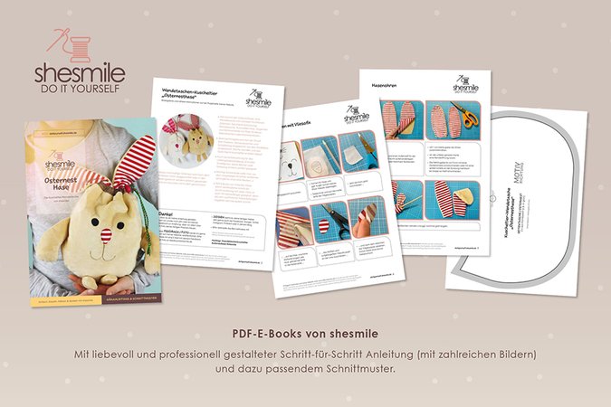 PDF-E-Books von shesmile: Diese leicht verständliche Schritt-für-Schritt-Anleitung mit vielen Fotos ist auch für Nähanfänger geeignet, denn die sehr ausführliche Fotoanleitung begleitet dich bei jedem Schritt.