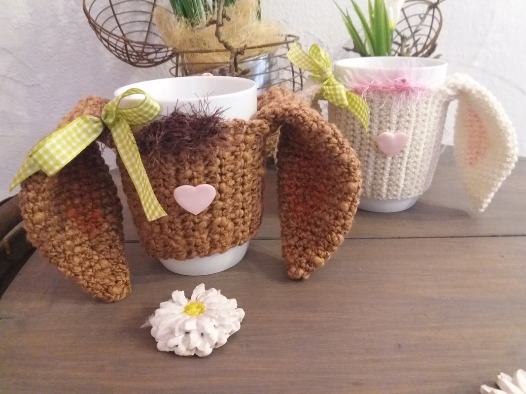 Wie wärs mit einem witzigen Tassenwärmer? Mit ein paar Eiern oder einem Schokohasen in der Tasse, ist es auch ein nettes Ostergeschenk. Mit meiner Anleitung kannst du diesen Tassenwärmer ganz einfach nachhäkeln.