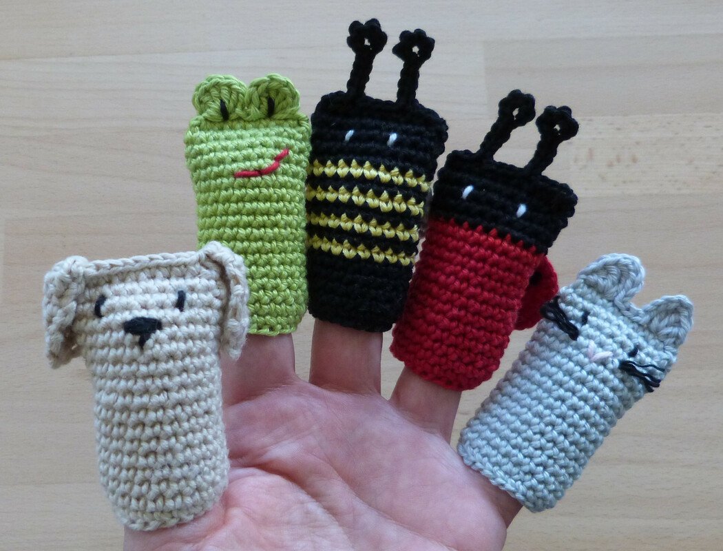 Deine Kinder langweilen sich? Dann häkel ihnen doch lustige Fingerpuppen in Tierform! Damit kannst du kleinere Kinder toll bespaßen, trösten oder ablenken, für jede Situation ist bestimmt das richtige Tier dabei! Größere Kinder können selbst Rollenspiele damit ausprobieren! Auch ein tolles Mitgebsel für den nächsten Kindergeburtstag!