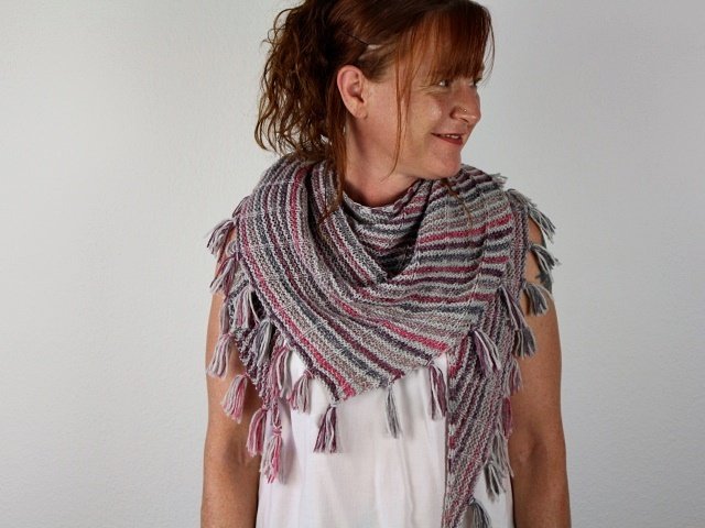 Das Fransentuch lässt sich mit jeder Garnstärke stricken. Für den Sommer nehmt Ihr einfach dünneres Garn und Wintertauglich wird es mit dicker Wolle.