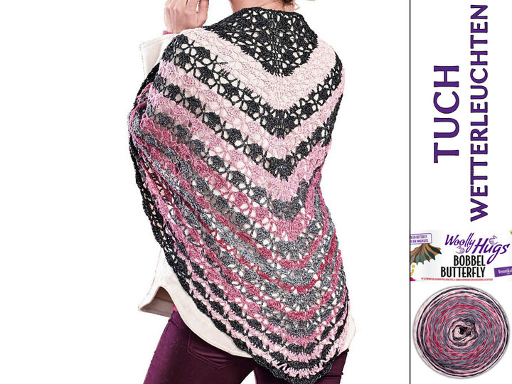 Ein ganz tolles Muster habe ich bei diesem Tuch verwendet. Die Streifen entstehen durch den Bobbel Butterfly automatisch.