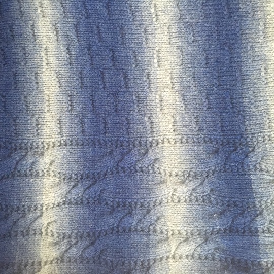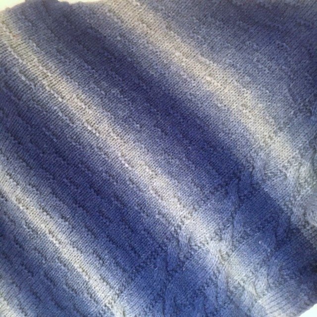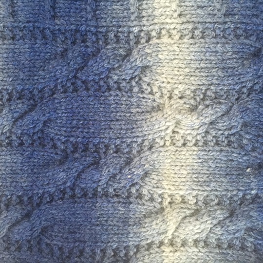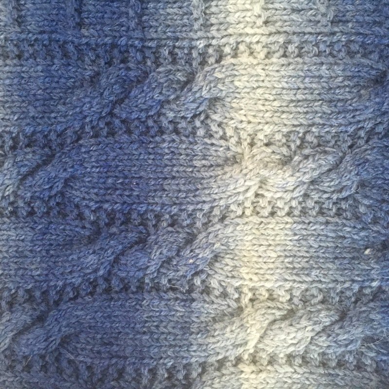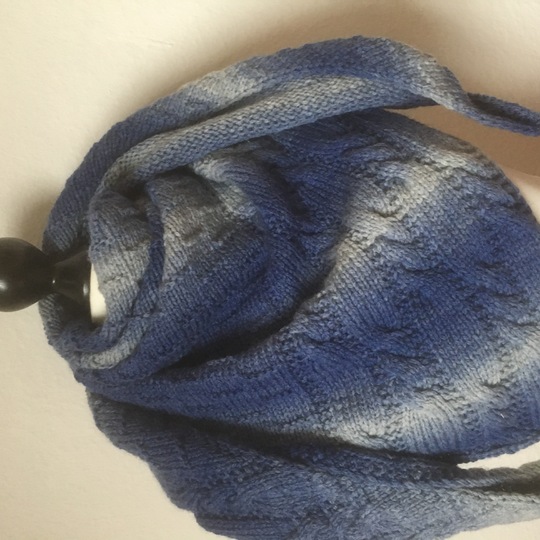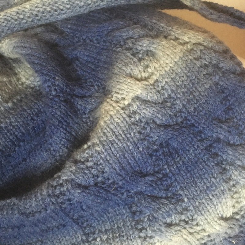 Das Tuch “Waterkant” (zu deutsch “Wasserrand”) ist für alle Küstenkinder und/oder Küstenliebhaber. Passend zum maritimen Thema ist es aus einem blauen Farbverlaufsgarn mit Zopfmuster gestrickt. Das Zopfmuster zieht sich an der längsten Kante lang, der Rest des Tuches wird in einem einfachen rechts-links Muster gestrickt.