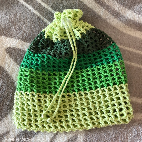 Wenn du die genannte Wolle verwendest wird der Beutel ca. 21 x 24 cm groß.