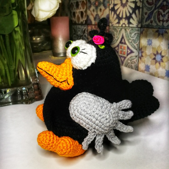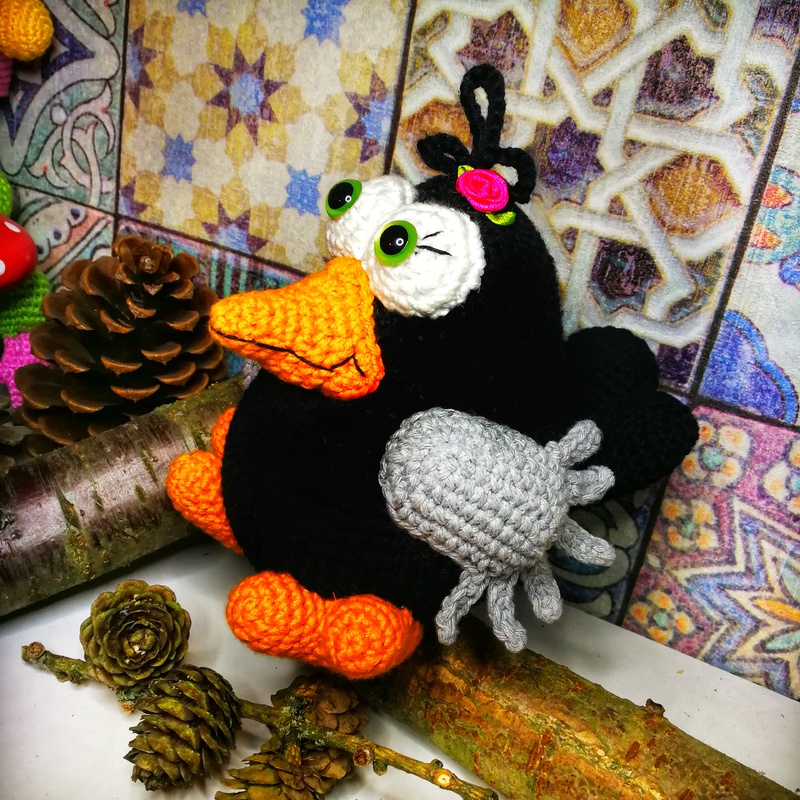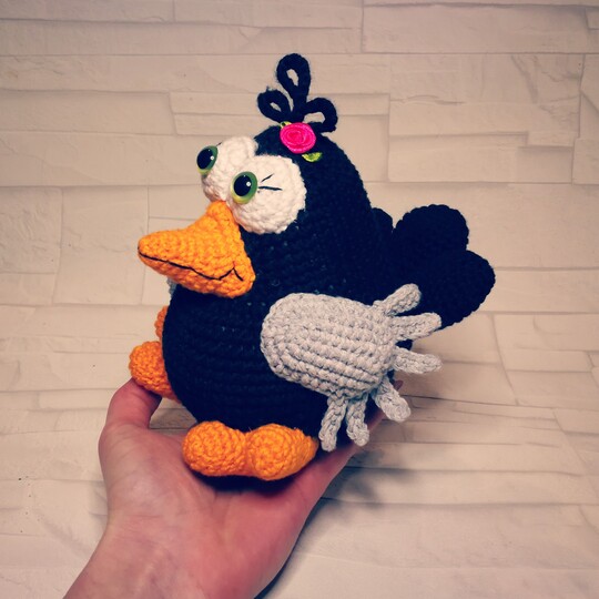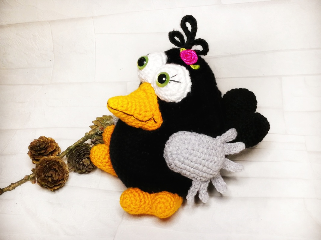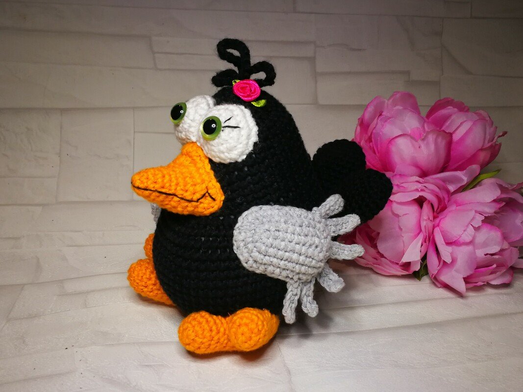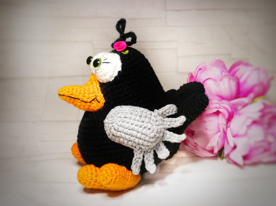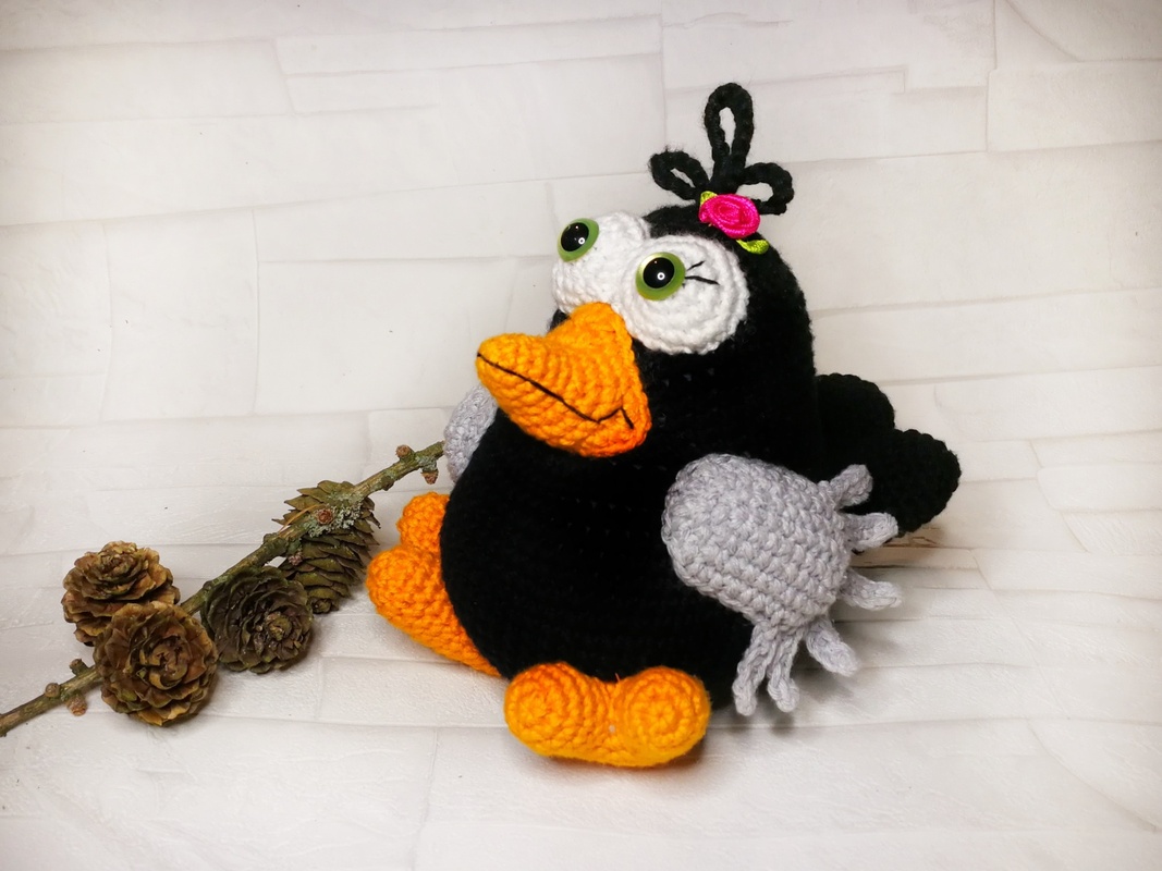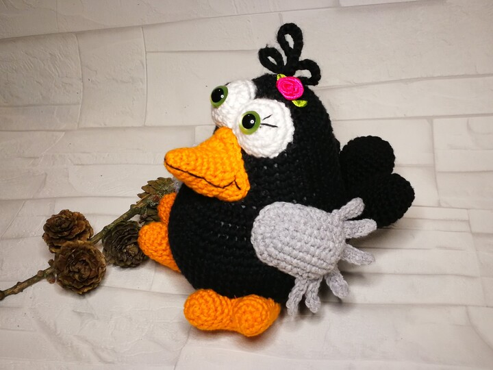 Die lustige, verträumte Rabendame kannst du mit Hilfe dieser, auf 17 Seiten sehr ausführlich geschriebenen Anleitung nacharbeiten, viele Bilder helfen dir bei der Umsetzung.