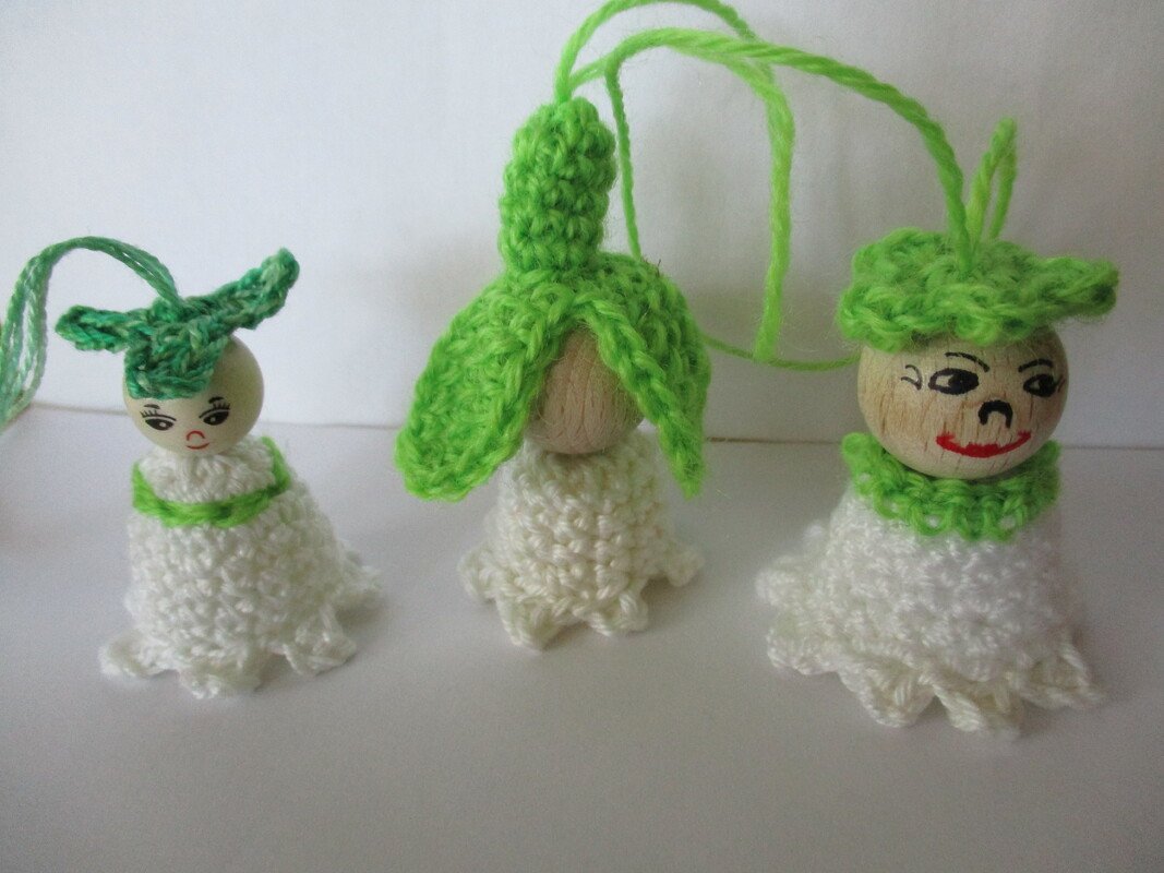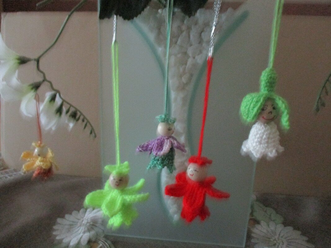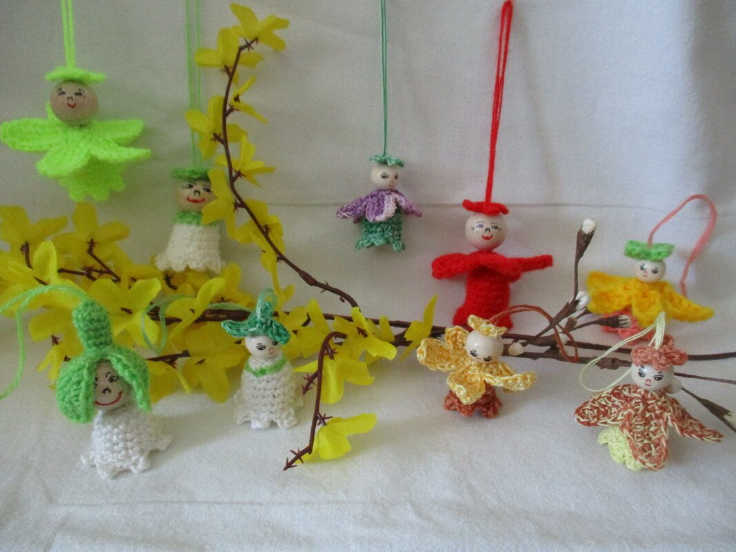 Meine bunten Blütenkinder sind alle aus Woll- bzw. Häkelgarnresten hergestellt.