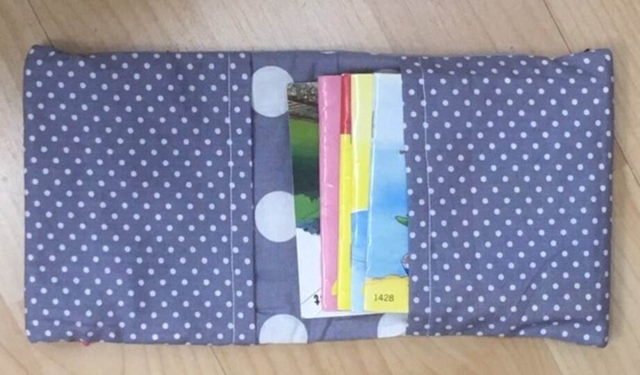 Die Pixi-Hülle hat zusammengelegt etwa die Masse 13 x 13 cm und bietet gut Platz für 12 Pixi-Büchlein.