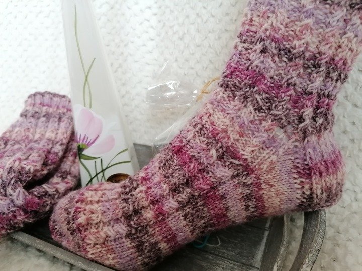 Eine Socke, die aussieht als hätte sie Minizöpfe ...