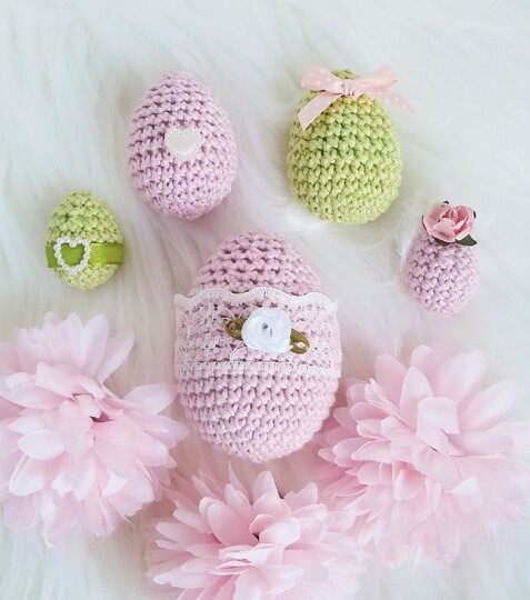 Häkelanleitung für zuckersüße (Oster-) Eier in 3 verschiedenen Größen, gehäkelt aus festen Maschen.