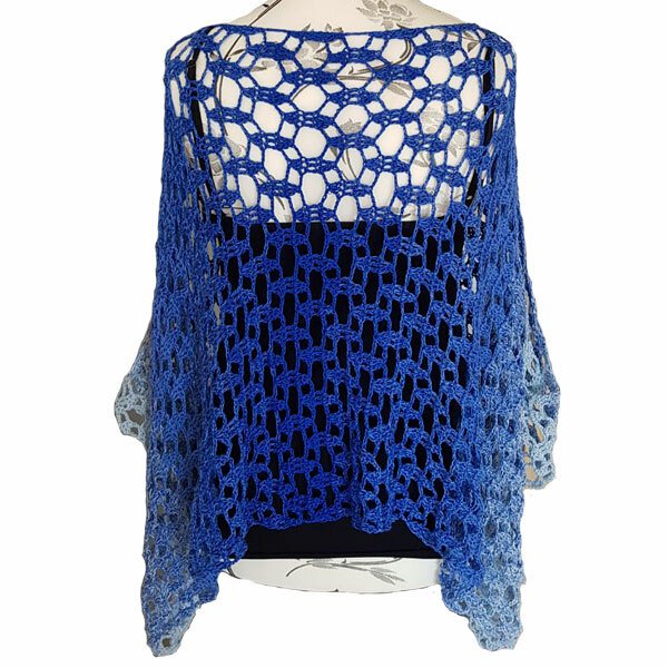 Das Shirt oder der Überwurf ist luftig und leicht. Es wird in 2 Teilen gehäkelt, beide Teile sind gleich und werden quer gehäkelt.