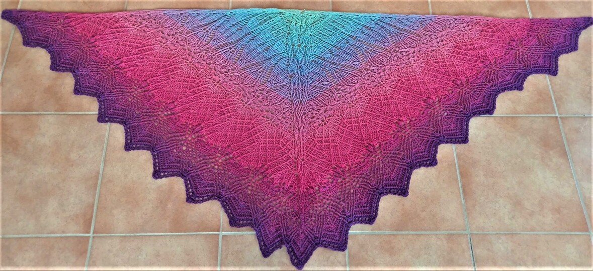 Diese Inspiration erschuf dieses Dreieckstuch, welches in 2 verschiedene Größen zu häkeln ist.