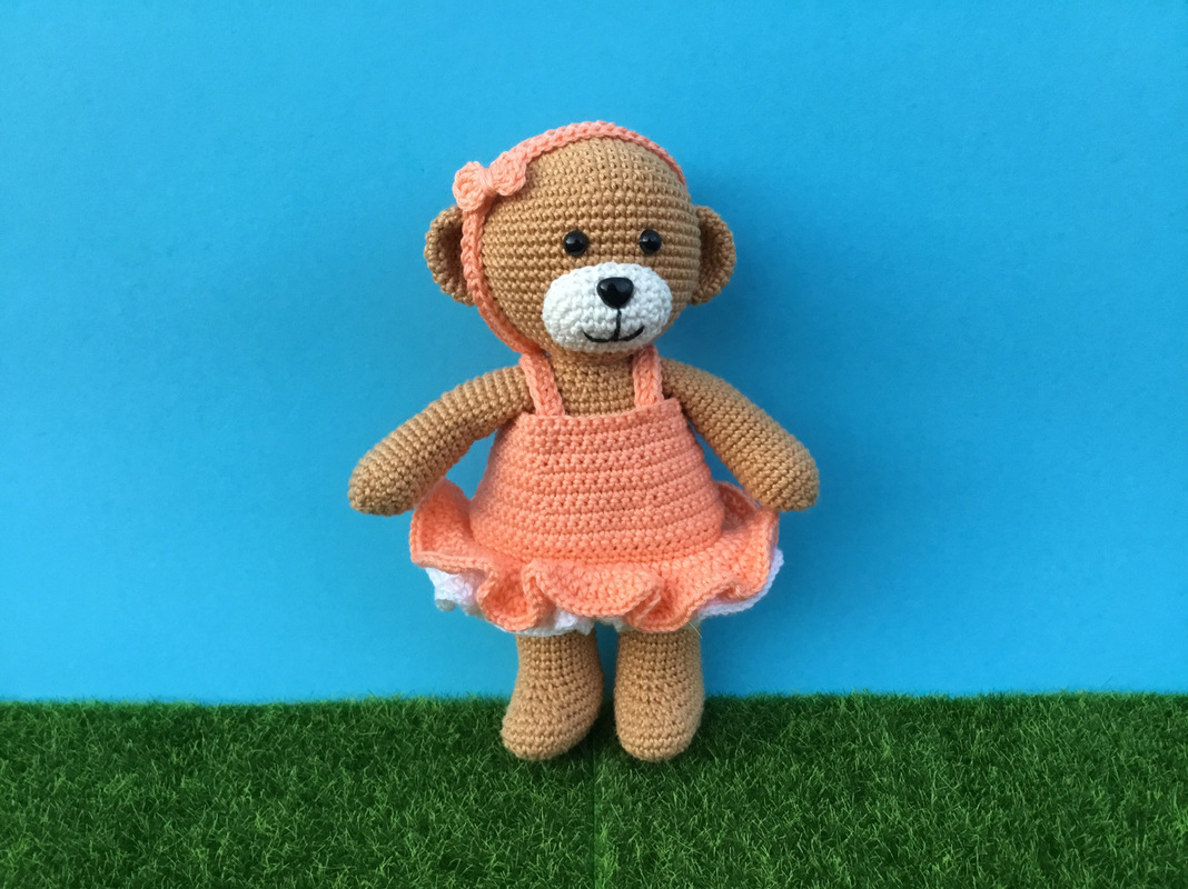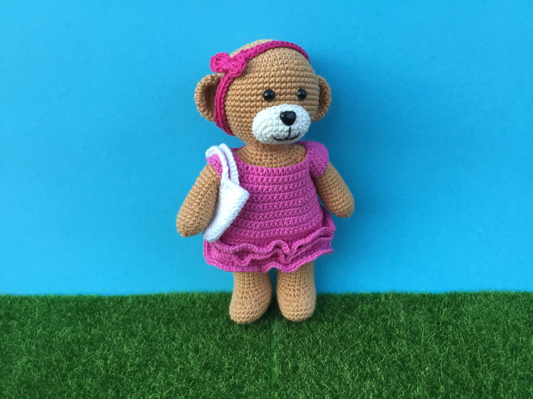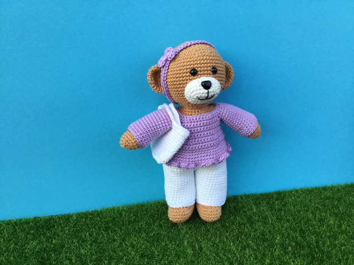 Die Anleitung beinhaltet neben den Bären auch die Kleidung (Latzhose, Hose, Shirts und 2 Kleider), das Basecap und den Gartenhut, sowie zwei Taschen und ein Haarband.