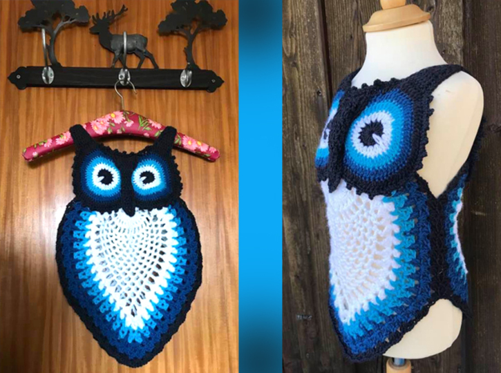 Petra Perle Pullunder Eule für kleine Kinder ist ein tolle Handarbeit für alle OMAS und Mütter und sicher ein wundervolles Kleidungsstück für kleinen EULENFREUNDE